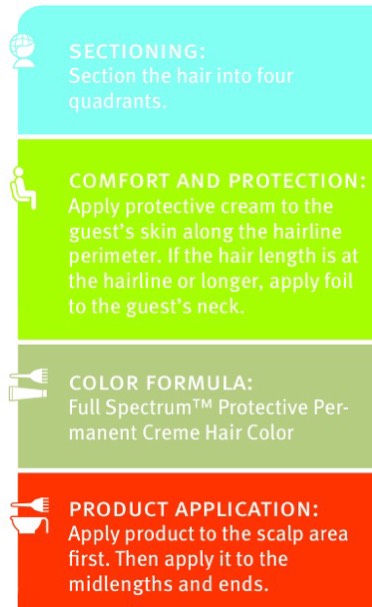 Transforms guest’s natural hair color to a darker color.