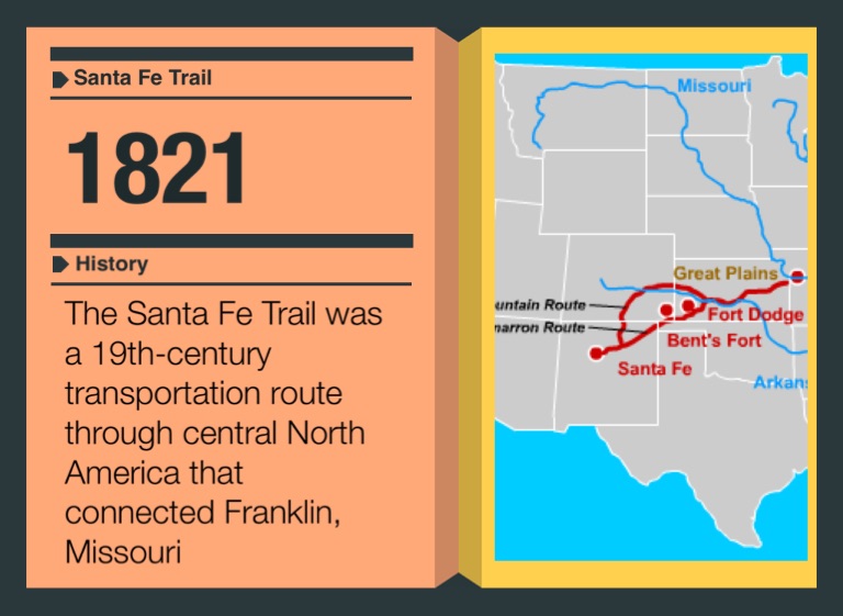 The Santa Fe Trail was a 19th-century transportation route through central North America that connected Franklin, Missouri
