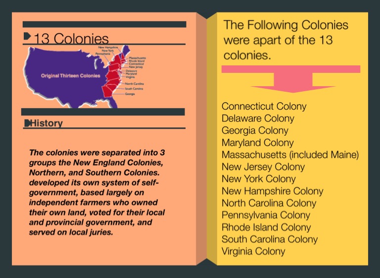 The colonies were separated into 3 groups the New England Colonies, Northern, and Southern Colonies. developed its own system of self-government, based largely on independent farmers who owned their own land, voted for their local and provincial government, and served on local juries.