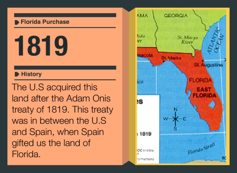 The U.S acquired this land after the Adam Onis treaty of 1819. This treaty was in between the U.S and Spain, when Spain gifted us the land of Florida.