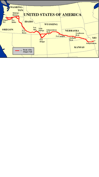 The Oregon Trail is a 2,200-mile historic eastβwest large-wheeled wagon route and emigrant trail that connected the Missouri River to valleys in Oregon.