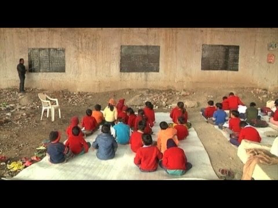 In New Delhi India there is an open school under a metro bridge. Some guy opened the school. First the guy only had two students and now he has more than 60. The kids are poor and that's why they can't go to school. Some kids have to walk a very long time to attend to their school.