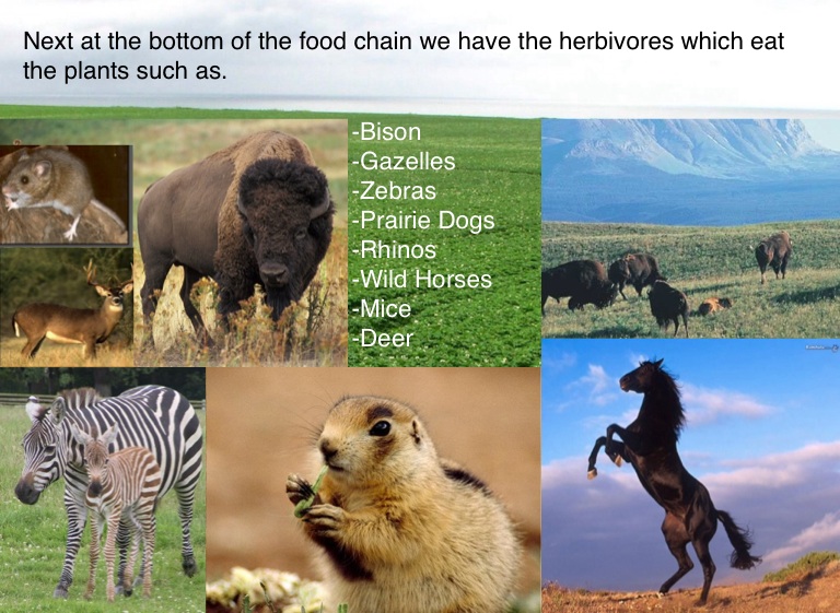 Next at the bottom of the food chain we have the herbivores which eat the plants such as.