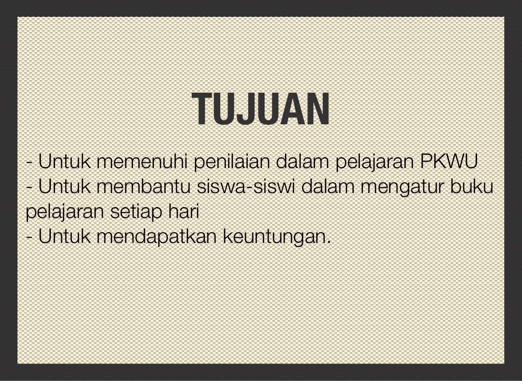- Untuk membantu siswa-siswi dalam mengatur buku pelajaran setiap hari