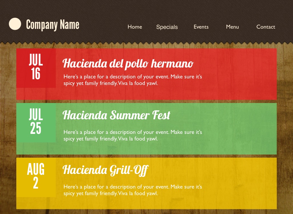Here’s a place for a description of your event. Make sure it’s spicy yet family friendly. Viva la food yawl.