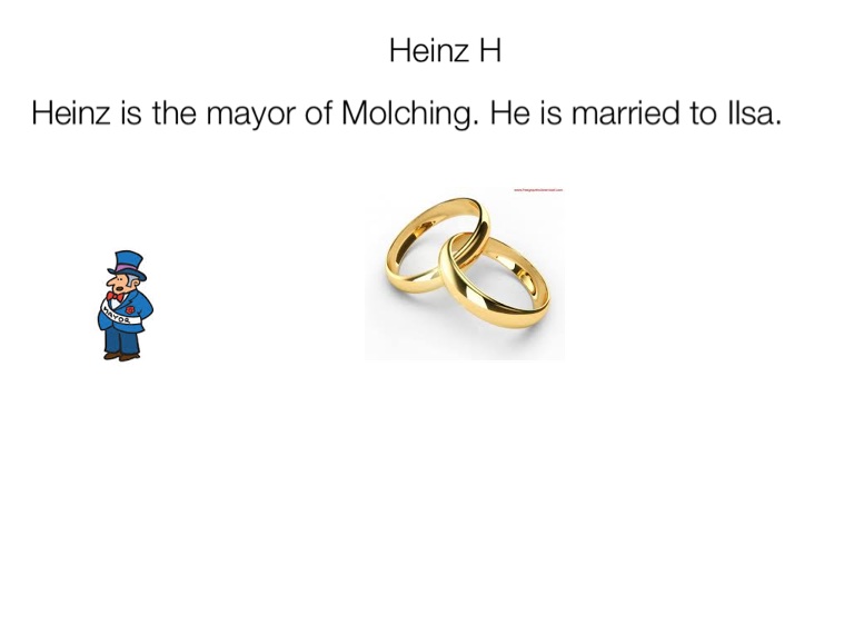 Heinz is the mayor of Molching. He is married to Ilsa.