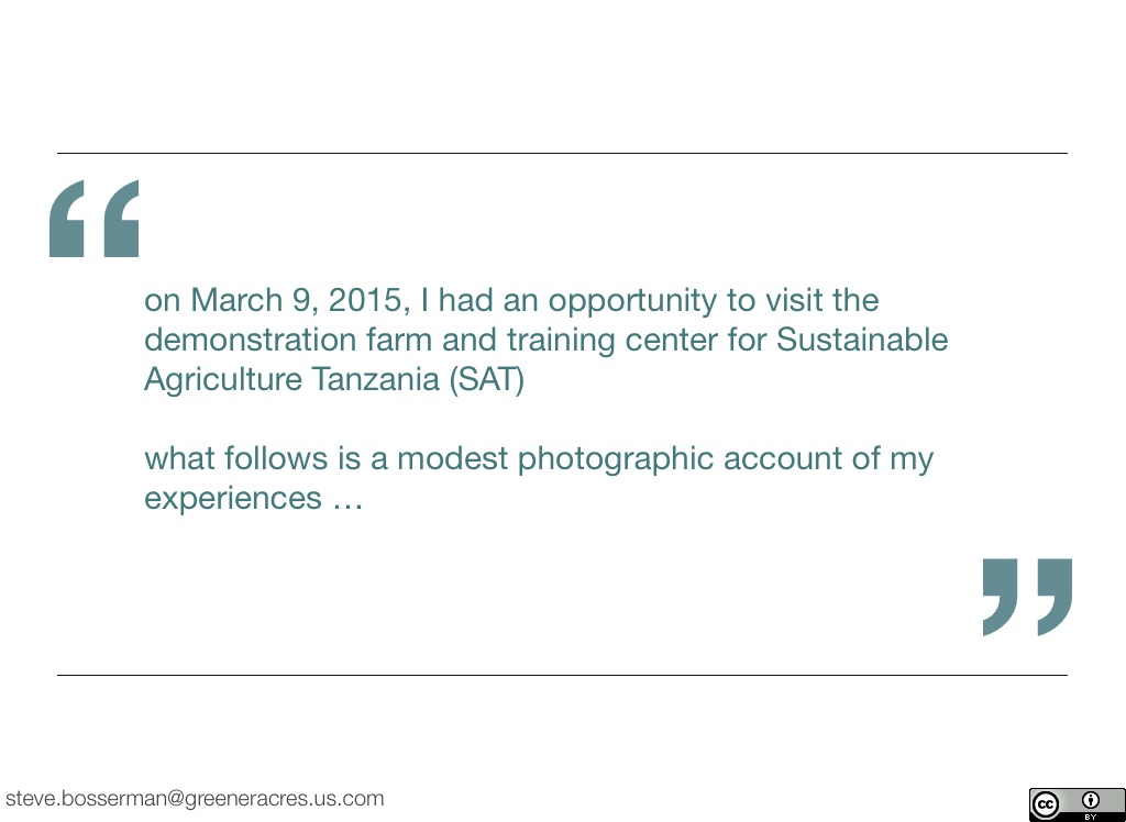 on March 9, 2015, I had an opportunity to visit the demonstration farm and training center for Sustainable Agriculture Tanzania (SAT)