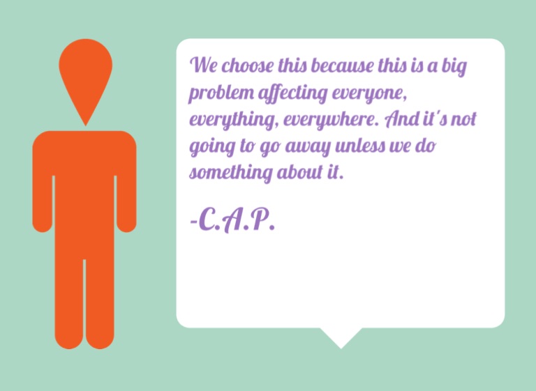 We choose this because this is a big problem affecting everyone, everything, everywhere. And it's not going to go away unless we do something about it.