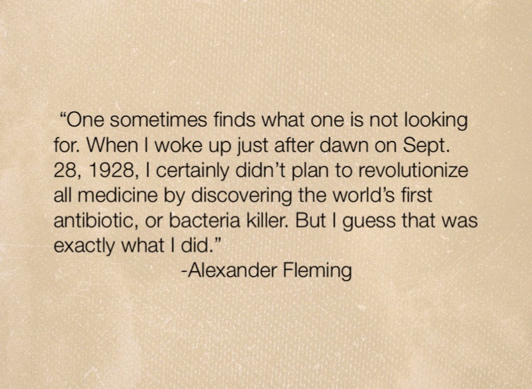 “One sometimes finds what one is not looking for. When I woke up just after dawn on Sept. 28, 1928, I certainly didn’t plan to revolutionize all medicine by discovering the world’s first antibiotic, or bacteria killer. But I guess that was exactly what I did.”