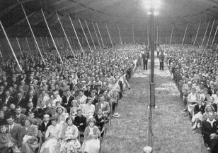 The Second Great awakening swept the United States just after 1790. In this movement, preachers rejected the 18th century belief that God predetermined ones salvation or damnation. They emphasized individual responsibility for seeking salvation and they insisted that people could improve themselves in society. Religious ideas in the early 19th century promoted individualism and responsibility. Christian churches split over these ideas, as various denominations competed to proclaim the message of a democratic God. The forums for their messages were large gatherings, some preachers could draw an audience of 20,000 people to outdoor camps. These gatherings were called Revivals, emotional meetings aimed to awaken religious faith through impassioned preaching and prayer. A revival would last 4-5 days. The Second Great Awakening also brought change on a large scale to enslaved African Americans. There was a strong democratic impulse in these churches and preached that all people blacks and whites belonged to the same God. Membership grew rapidly in the African Methodist Episcopal Church. It became a political, cultural and social center for African Americans, providing schools and other services that whites denied them.