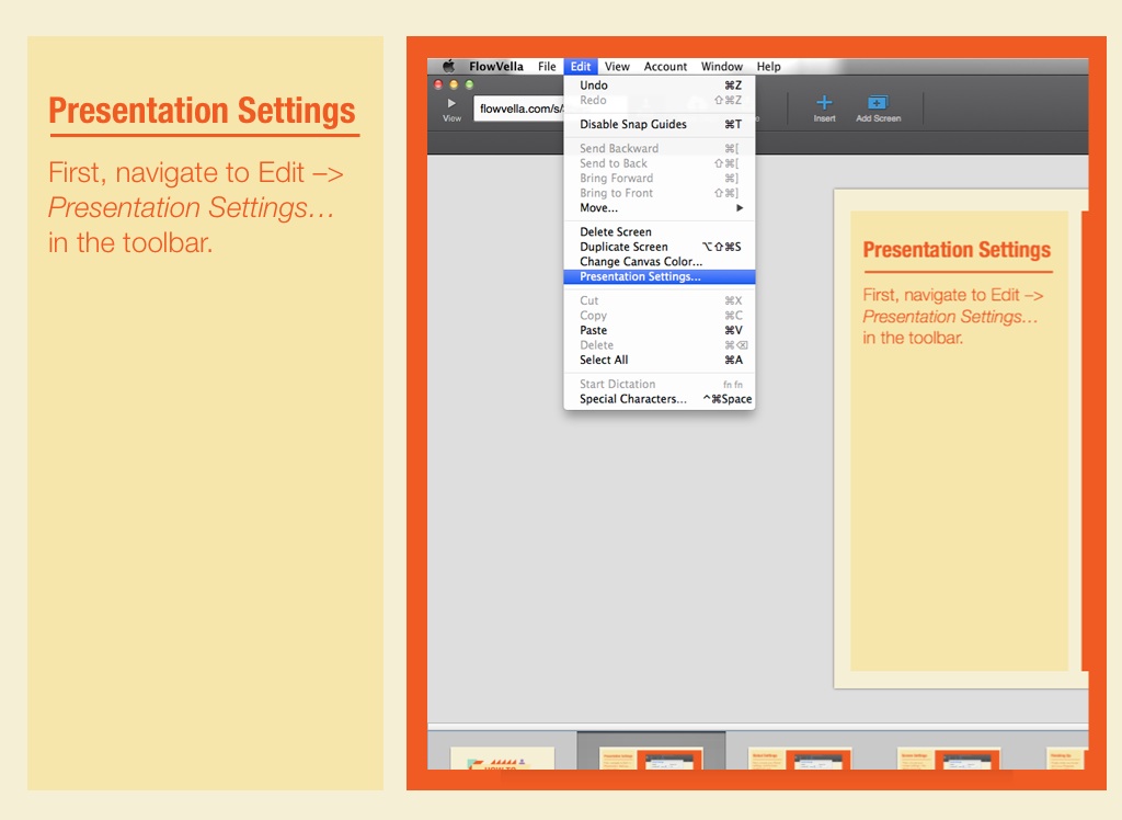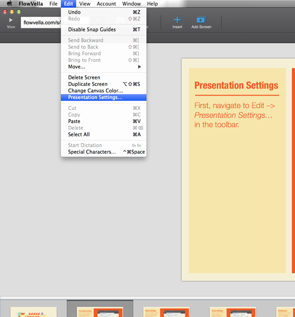 First, navigate to Edit –> Presentation Settings…