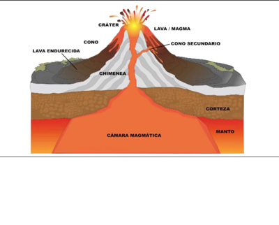- Chimenea: Conducto para dar paso al humo y al magma.
