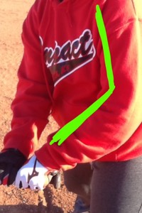 If your arms are straight, the ball won't hit the sweet spot on the bat and there won't be enough force.