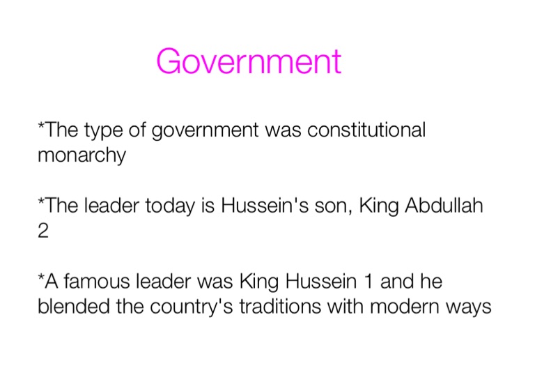 *A famous leader was King Hussein 1 and he blended the country's traditions with modern ways