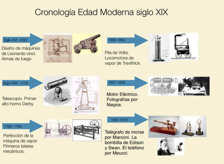 Telégrafo de morse por Marconi. La bombilla de Edison y Swan. El teléfono por Meucci.