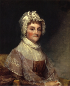 Abigail Adams is further distinguished as the first American woman honored as the wife of one U. S. President and the mother of another. Her husband John Adams, 2nd President, served from 1797 to 1801, and their son, John Quincy Adams, 6th President, served from 1825 to 1829.