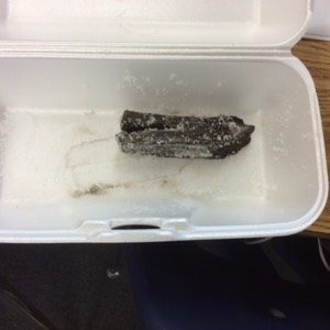 After we left it in the salt it became hard and black. The salt around it was very hard. It also become very light. It was a lot lighter then the first time we carved the potato. It also started to smell really bad.