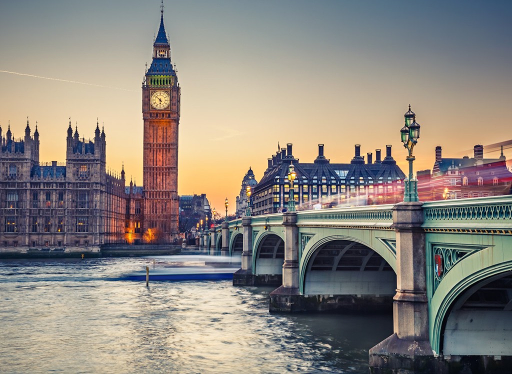 This is a picture of a bridge in London. You can also see a sunset in the background. In california it would be late morning. London is 8 hours ahead of California. For example if it was 1:00 PM here then it would be 9:00 PM there.