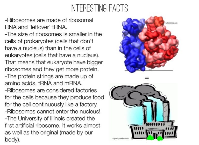 -The University of Illinois created the first artificial ribosome. It works almost as well as the original (made by our body).