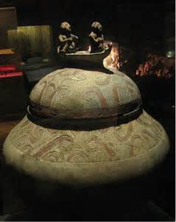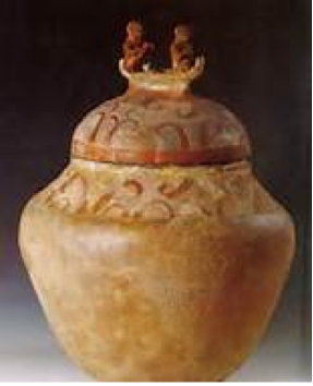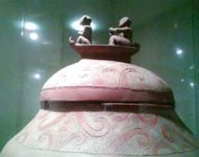 Filipinos traditionally make Manunggul Jars out of clay, water and paint. The people on the top of the jars represent the journey of the soul to the after life. Bones are placed inside, but the jar is not buried.