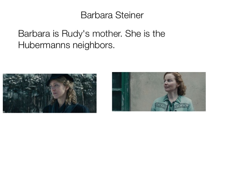 Barbara is Rudy's mother. She is the Hubermanns neighbors.