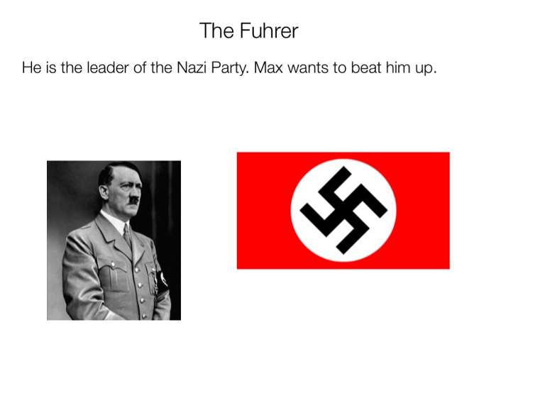He is the leader of the Nazi Party. Max wants to beat him up.