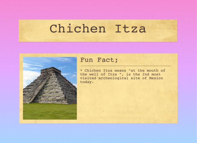 * Chichen Itza means “at the mouth of the well of Itza “, is the 2nd most visited archeological site of Mexico today.