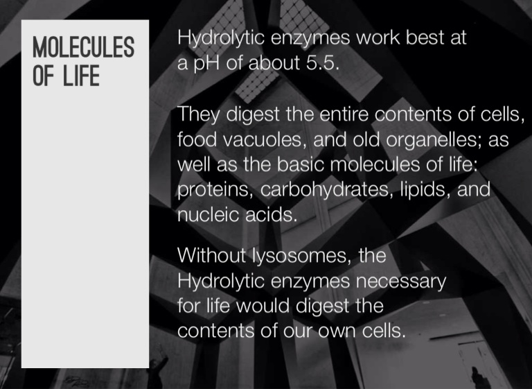 Without lysosomes, the Hydrolytic enzymes necessary for life would digest the contents of our own cells.