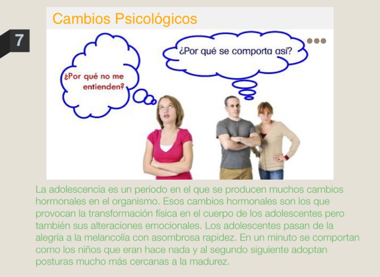 La adolescencia es un periodo en el que se producen muchos cambios hormonales en el organismo. Esos cambios hormonales son los que provocan la transformación física en el cuerpo de los adolescentes pero también sus alteraciones emocionales. Los adolescentes pasan de la alegría a la melancolía con asombrosa rapidez. En un minuto se comportan como los niños que eran hace nada y al segundo siguiente adoptan posturas mucho más cercanas a la madurez.