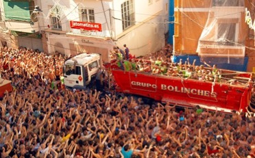Posteriormente el polo, comienza el desfile. Los participantes de España lanzan tomates a todo el mundo en las carrozas del desfile.
