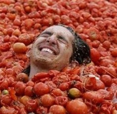 Es una gran fiesta donde todo el mundo y todo lo que se cubren con los tomates. Si usted odia los tomates, necesita seguir siendo su casa.