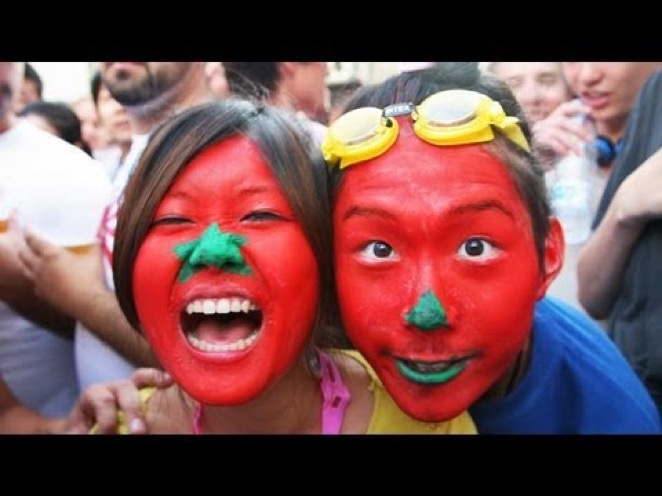 La tomatina en Buñol, España.