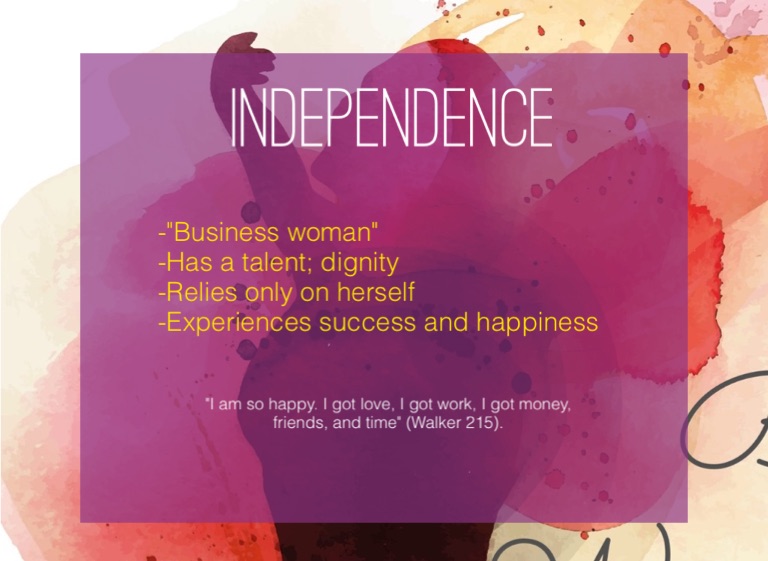 "I am so happy. I got love, I got work, I got money, friends, and time" (Walker 215).
