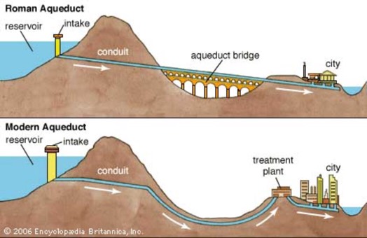 Aqueducts were first used during the Roman times. Is it not used anymore? The answer is that aqueducts are still used in a modified way today. Back in the days, aqueducts were used to conduct a a stream of water through valleys and such. Nowadays, aqueducts are basically a bunch of pipes and pumps giving water to other cities.