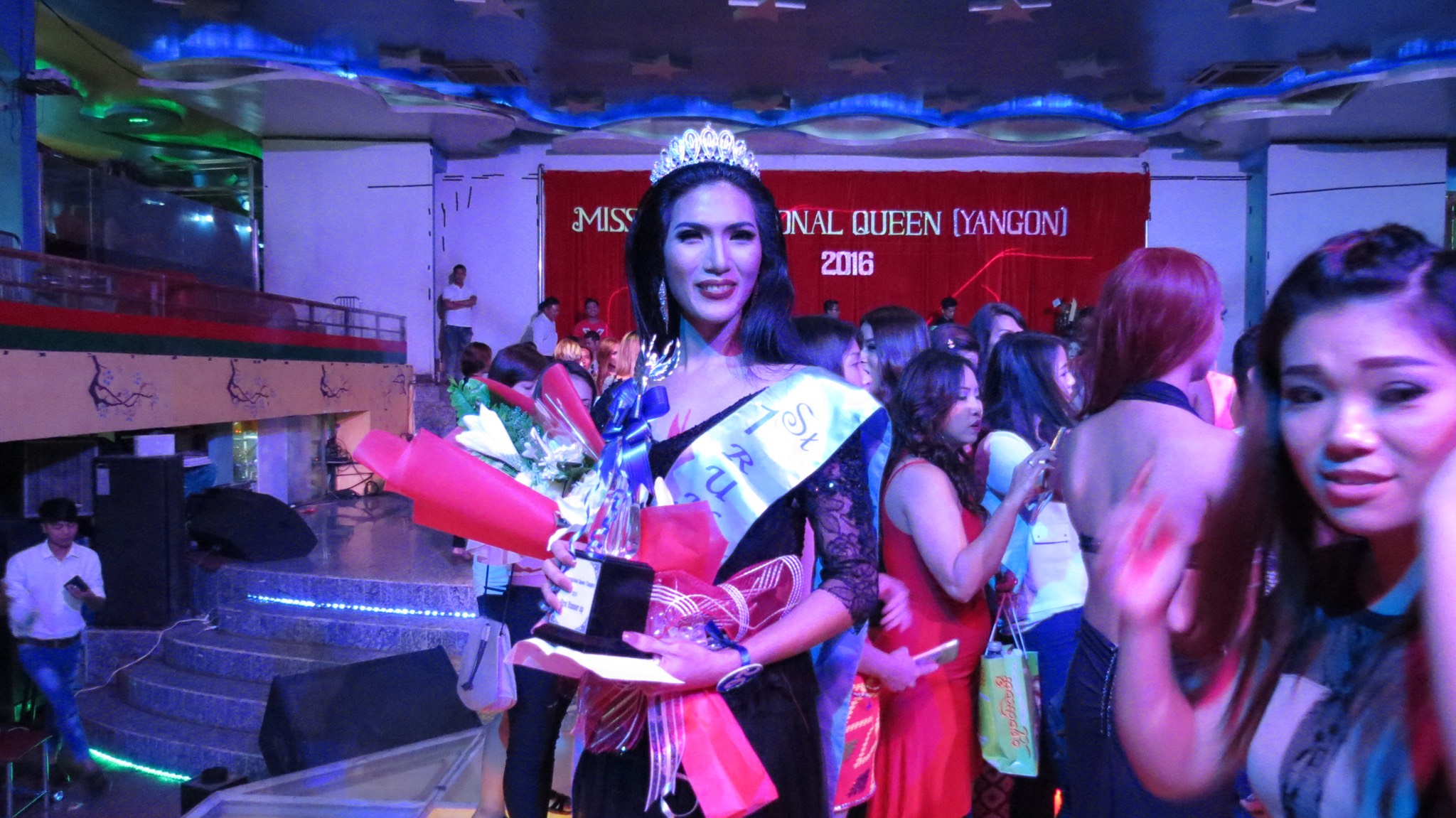 Queer community in Yangon organized a beauty contest to choose representaive to Miss International Queen in Bangkok. There were many cross- dressing performers in this event.