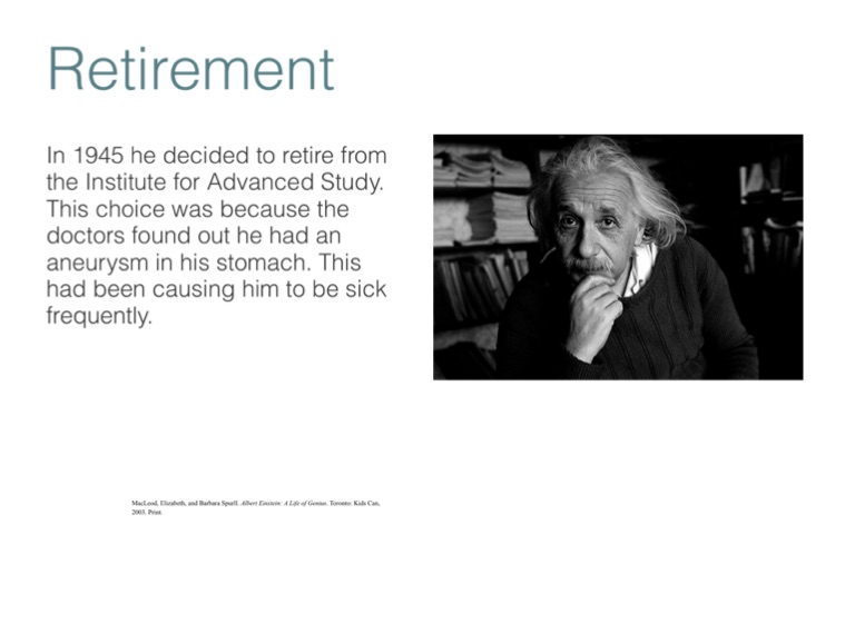 In 1945 he decided to retire from the Institute for Advanced Study. This choice was because the doctors found out he had an aneurysm in his stomach. This had been causing him to be sick frequently.