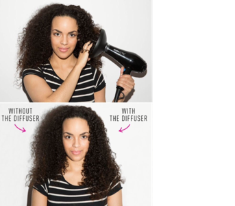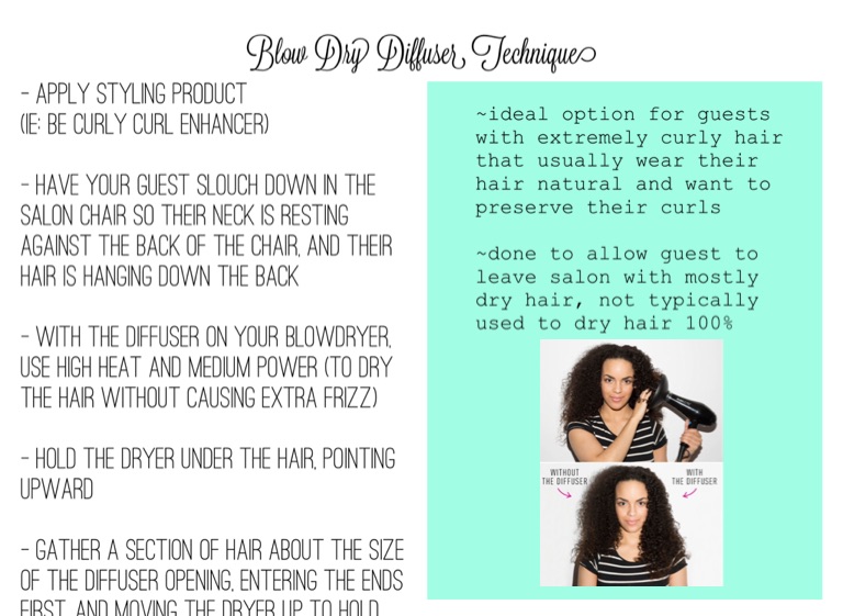 - GATHER A SECTION OF HAIR ABOUT THE SIZE OF THE DIFFUSER OPENING, ENTERING THE ENDS FIRST, AND MOVING THE DRYER UP TO HOLD THE SECTION TO DRY