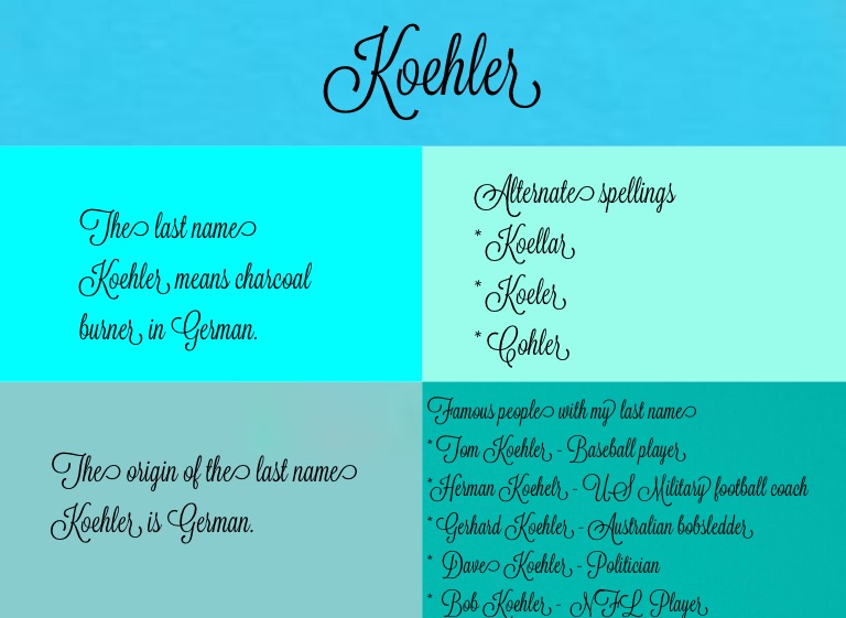 The last name Koehler means charcoal burner in German.