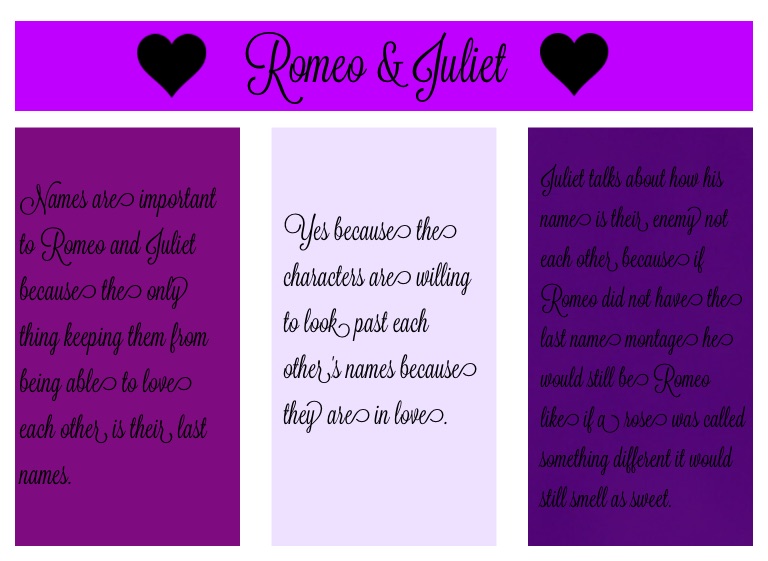 Juliet talks about how his name is their enemy not each other because if Romeo did not have the last name montage he would still be Romeo like if a rose was called something different it would still smell as sweet.