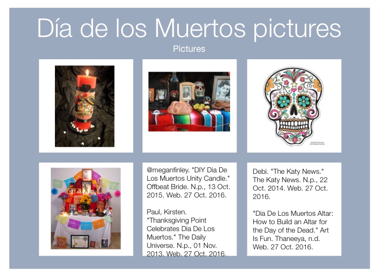 "Dia De Los Muertos Altar: How to Build an Altar for the Day of the Dead." Art Is Fun. Thaneeya, n.d. Web. 27 Oct. 2016.