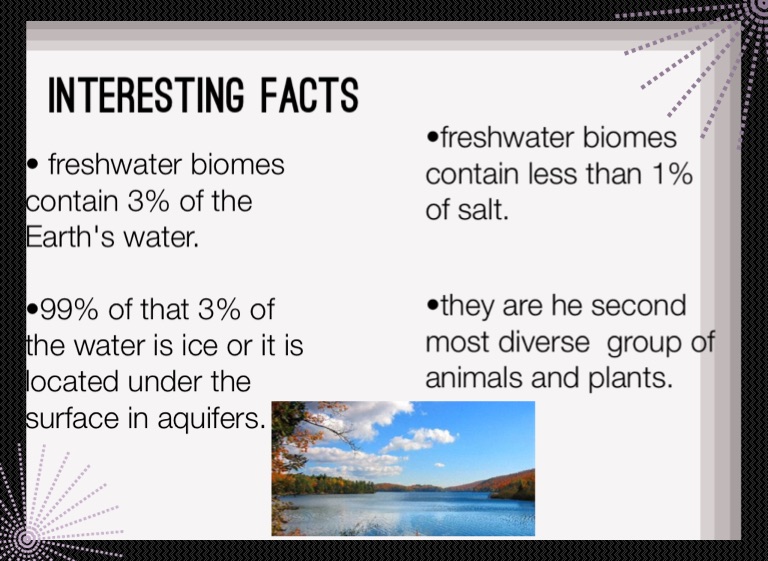 •99% of that 3% of the water is ice or it is located under the surface in aquifers.