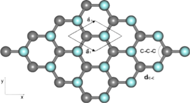 Top view and side view of a 4 x 4 propagated primitive cell of the X-graphene system