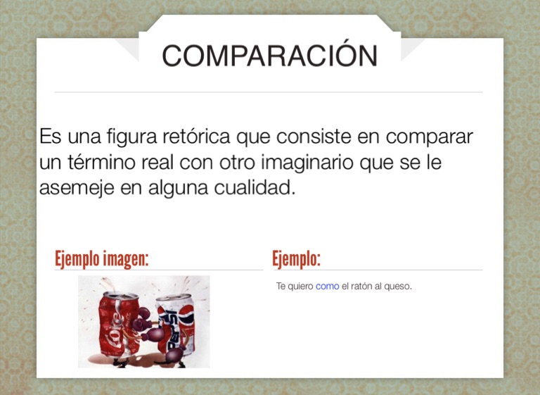 Es una figura retórica que consiste en comparar un término real con otro imaginario que se le asemeje en alguna cualidad.