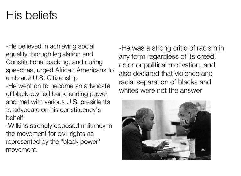 -Wilkins strongly opposed militancy in the movement for civil rights as represented by the "black power" movement.