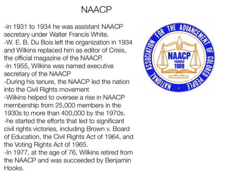 -Wilkins helped to oversee a rise in NAACP membership from 25,000 members in the 1930s to more than 400,000 by the 1970s.