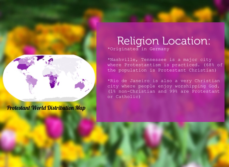 *Nashville, Tennessee is a major city where Protestantism is practiced. (68% of the population is Protestant Christian)