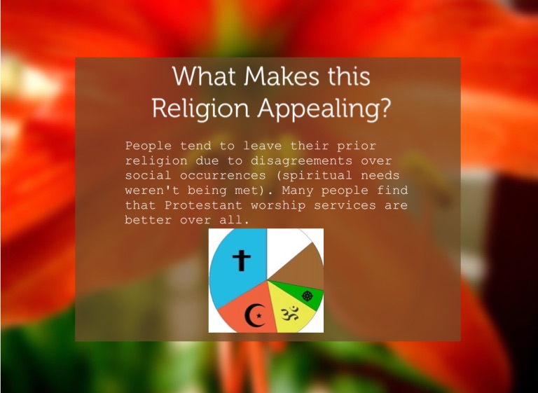 People tend to leave their prior religion due to disagreements over social occurrences (spiritual needs weren't being met). Many people find that Protestant worship services are better over all.