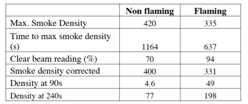 «The most noticeable result from the cone calorimeter tests is that there ws hardly any measurable smoke production from the material»