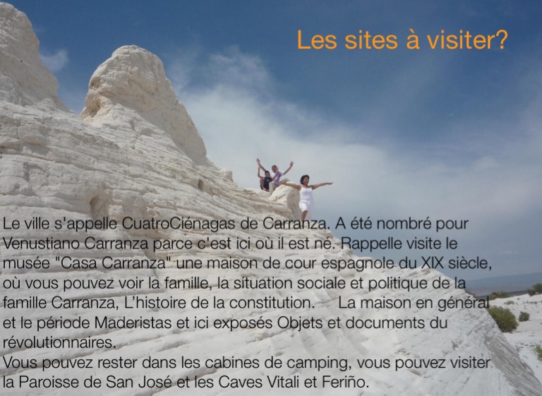 Le ville s'appelle CuatroCiénagas de Carranza. A été nombré pour Venustiano Carranza parce c'est ici où il est né. Rappelle visite le musée "Casa Carranza" une maison de cour espagnole du XIX siècle, où vous pouvez voir la famille, la situation sociale et politique de la famille Carranza, L’histoire de la constitution. La maison en général et le période Maderistas et ici exposés Objets et documents du révolutionnaires.