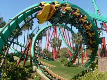Two of the most common examples are a bike on the top of the hill, and a roller coaster on the First hill. As your bike sits on the top you are storing energy. Same as the roller coaster. The energy on the first hill is stored so you can go up again on the other hills.